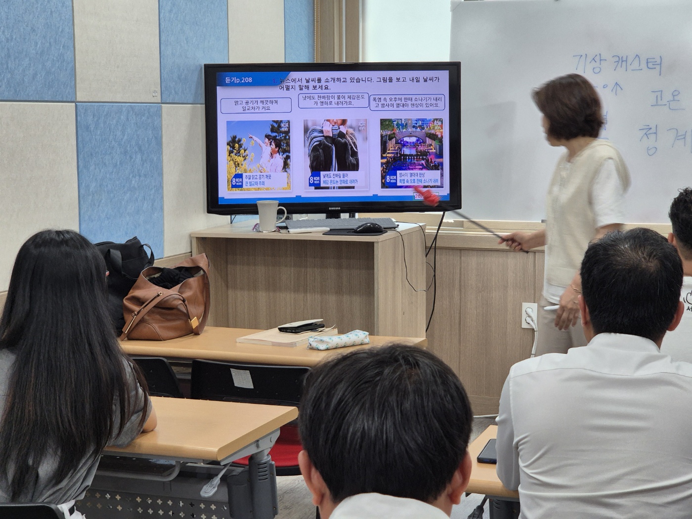 모두가 열심히 필기를 하며 한국어 표현 하나라도 더 익히려고 노력하는 모습이었습니다.