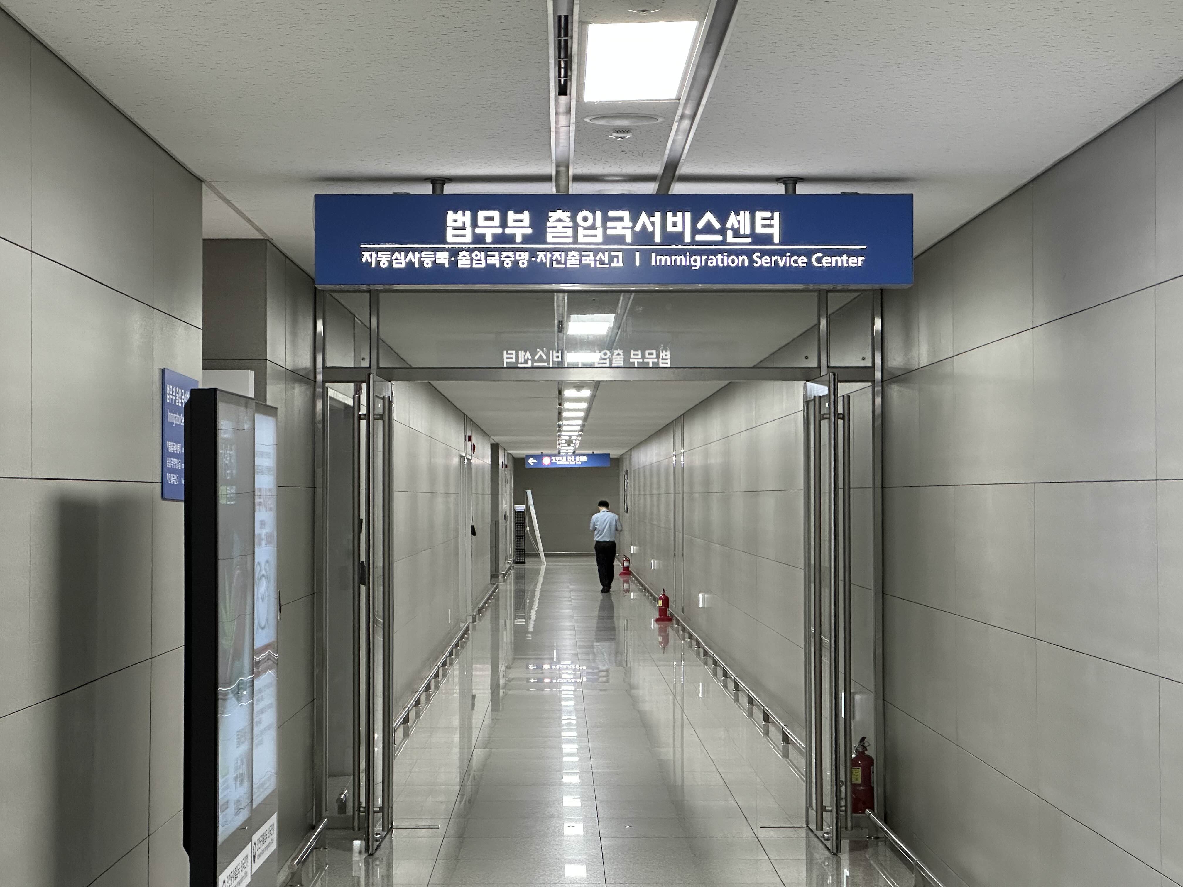 사진처럼 정부종합행정센터라는 이정표가 보이고 그 안내를 따라가면 출입국서비스센터에 갈수 있습니다. 왼쪽 마지막 문입니다.