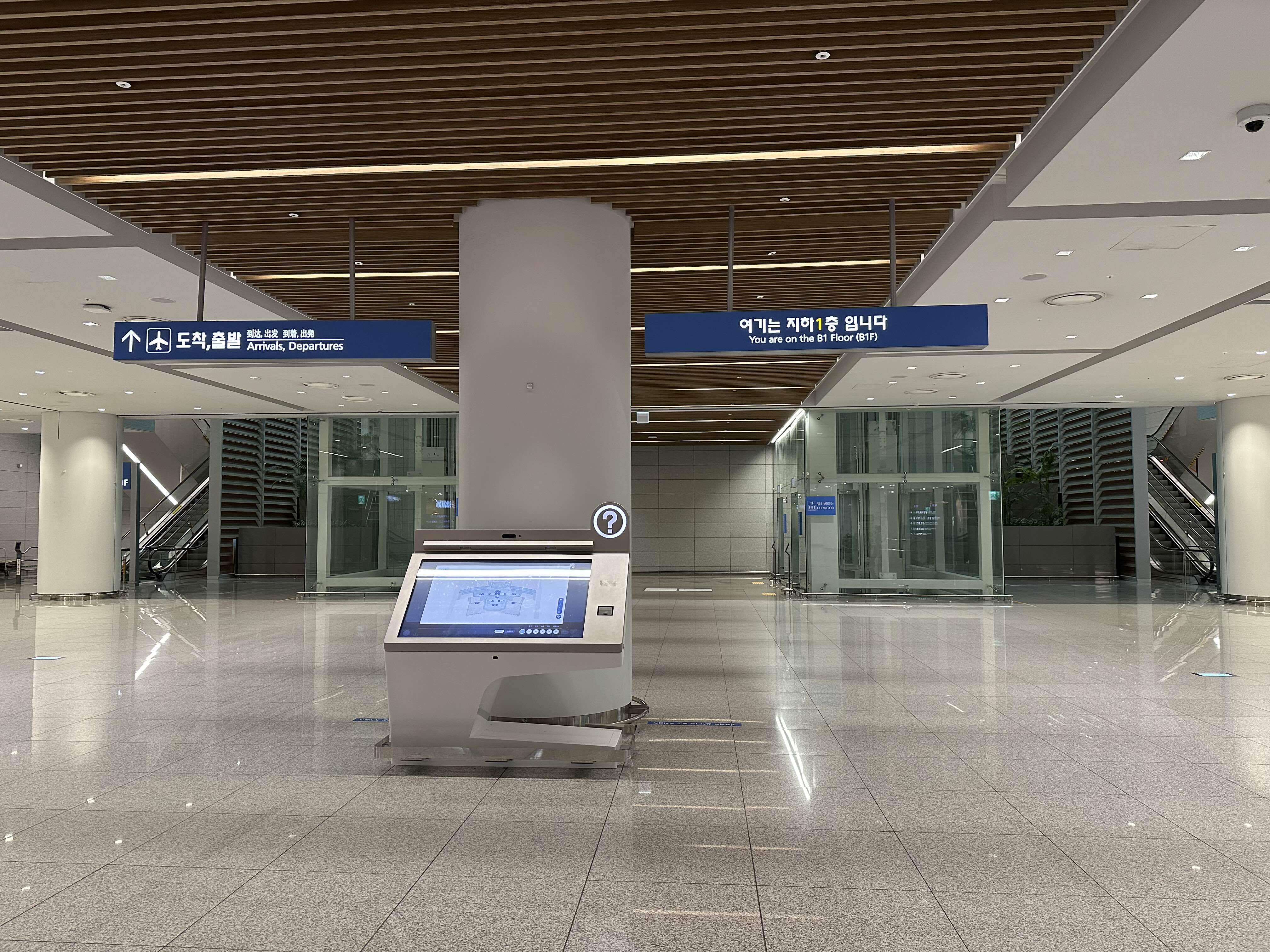 버스를 타고 갈 경우 보통은 3층 출국장에서 하차합니다. 그러면 F열 앞 엘리베이터나 에스컬레이터를 이용해 2층으로 내려 갑니다.