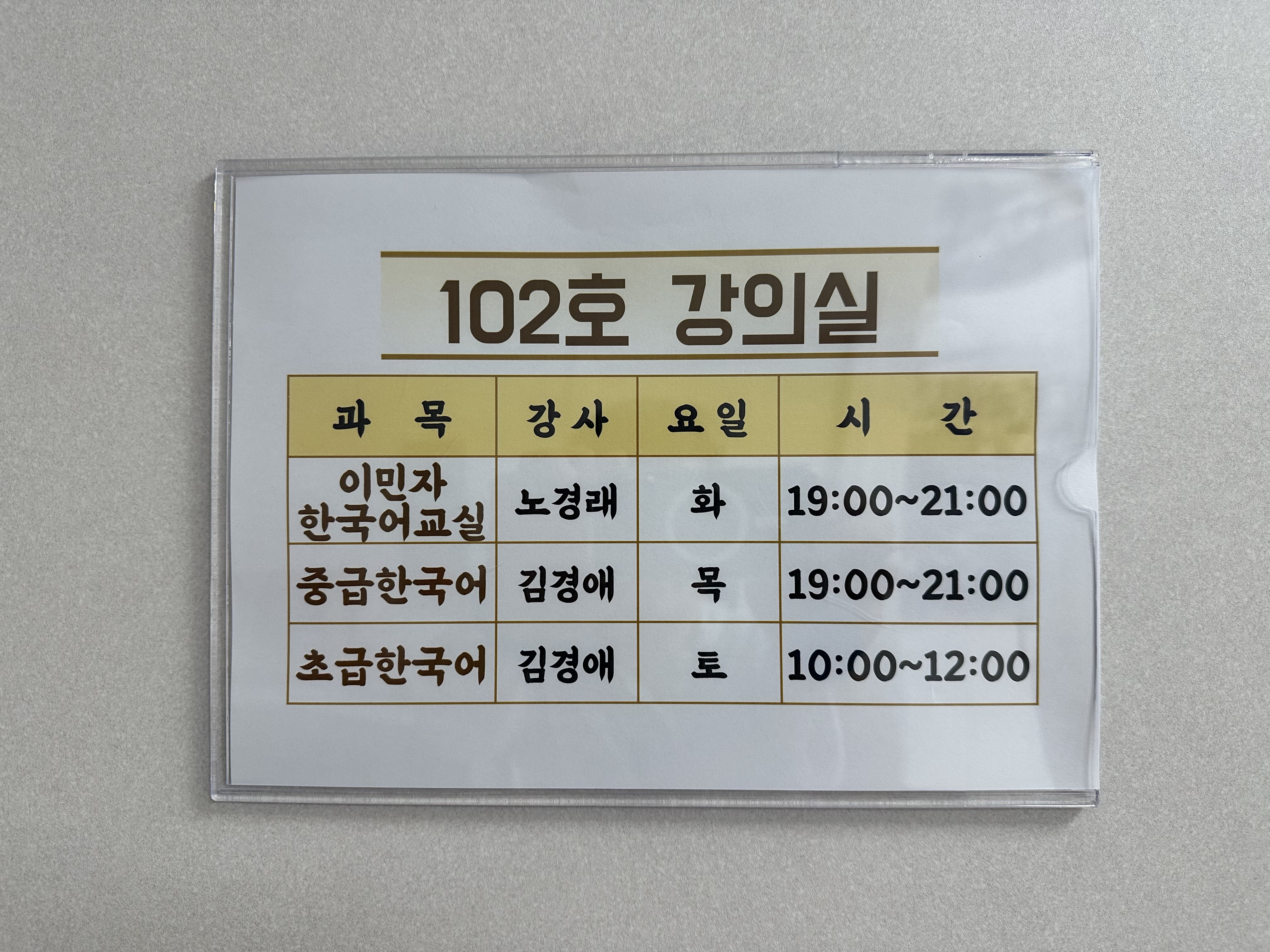한달 정도 방학을 하고 다시 만나는 것입니다. 반가운 얼굴도 있고 새로온 외국인근로자도 있고 강사도 여전하고 분위기가 너무 좋습니다.