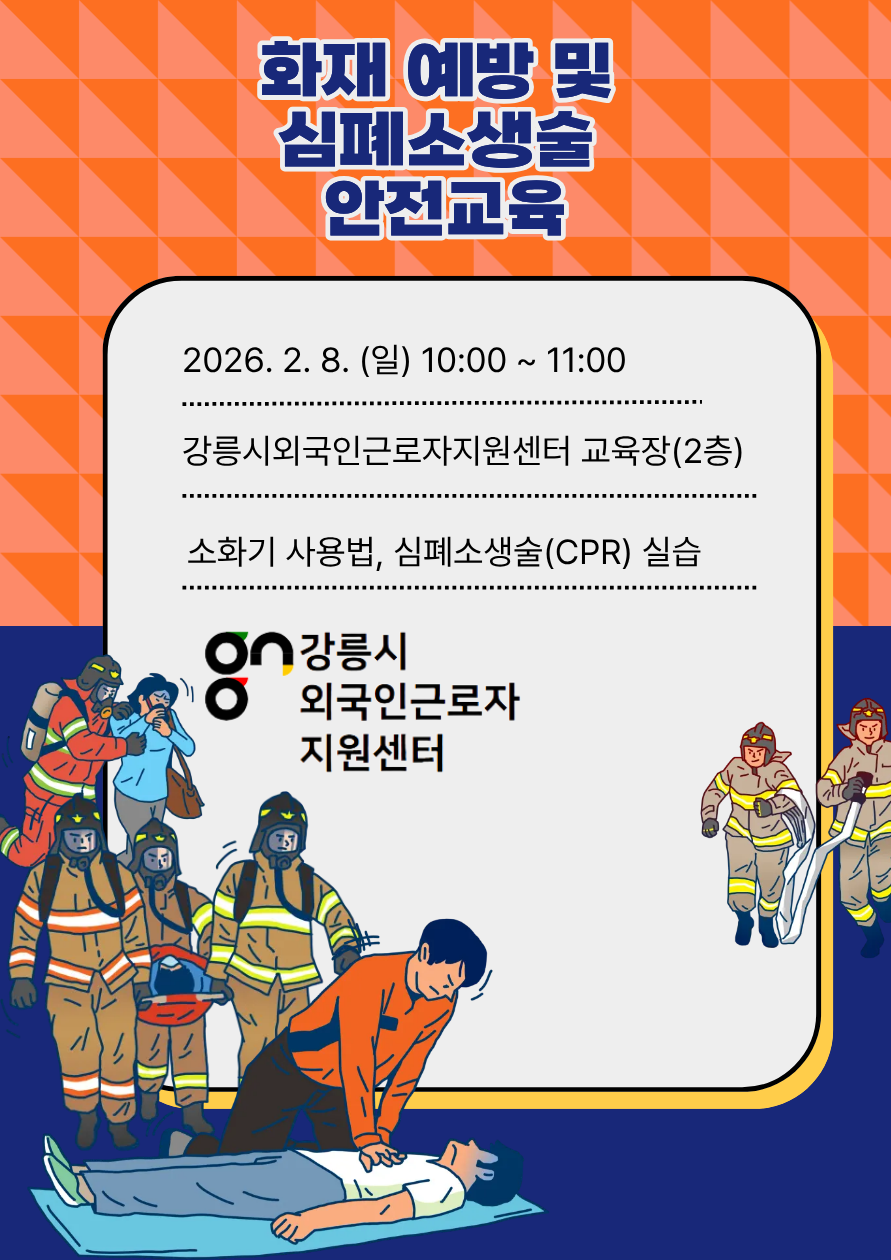 외국인근로자 및 주민을 대상으로 국내 소방 시스템(119 신고) 및 소화기 사용법, 심폐소생술에 대한 교육을 아래와 같이 진행합니다.